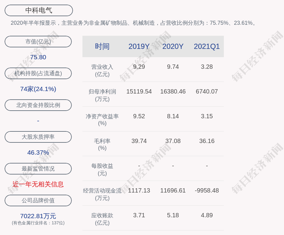 2020年半年報顯示,中科電氣的主營業(yè)務(wù)為非金屬礦物制品、機械制造,占營收比例分別為:75.75%、23.61%。