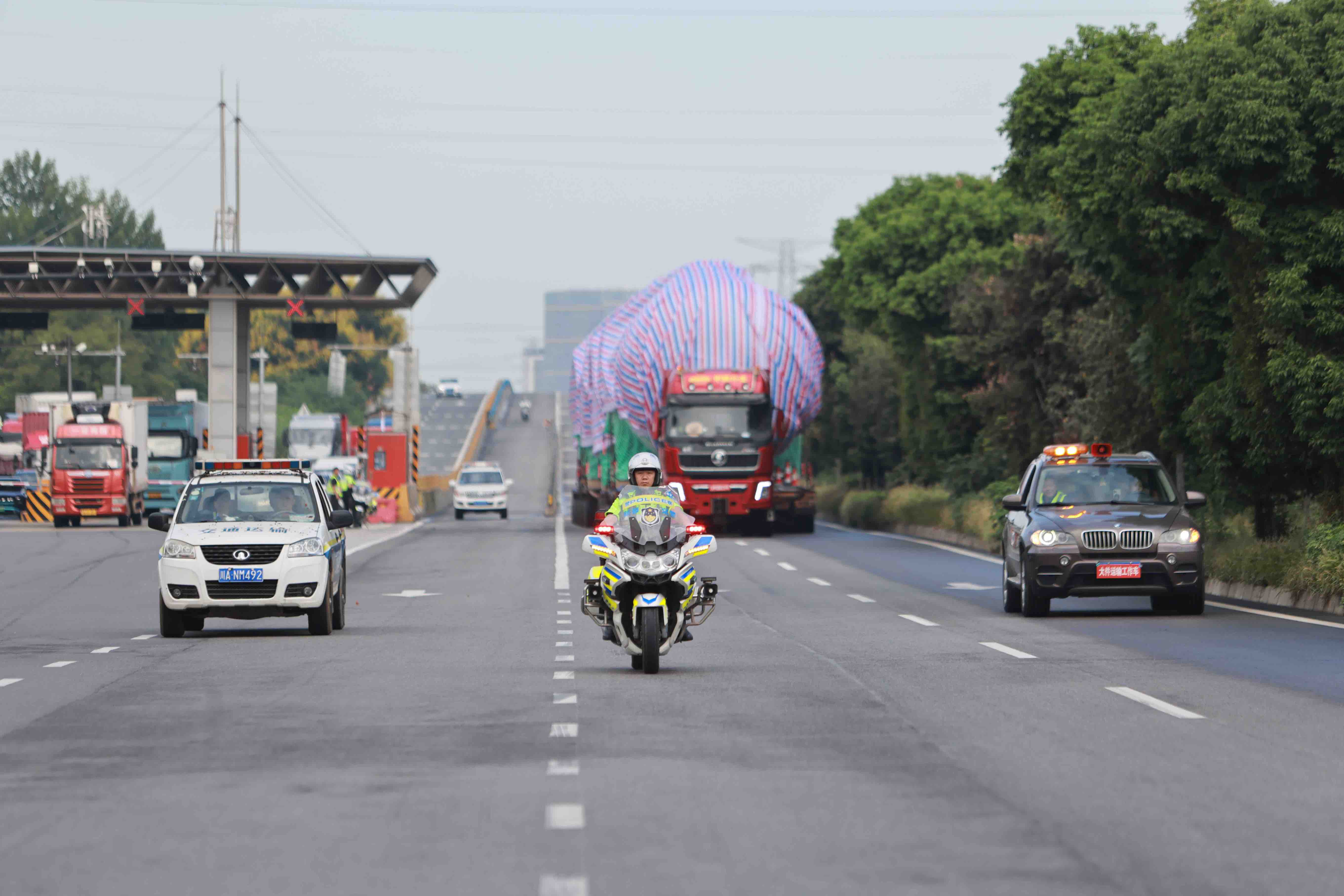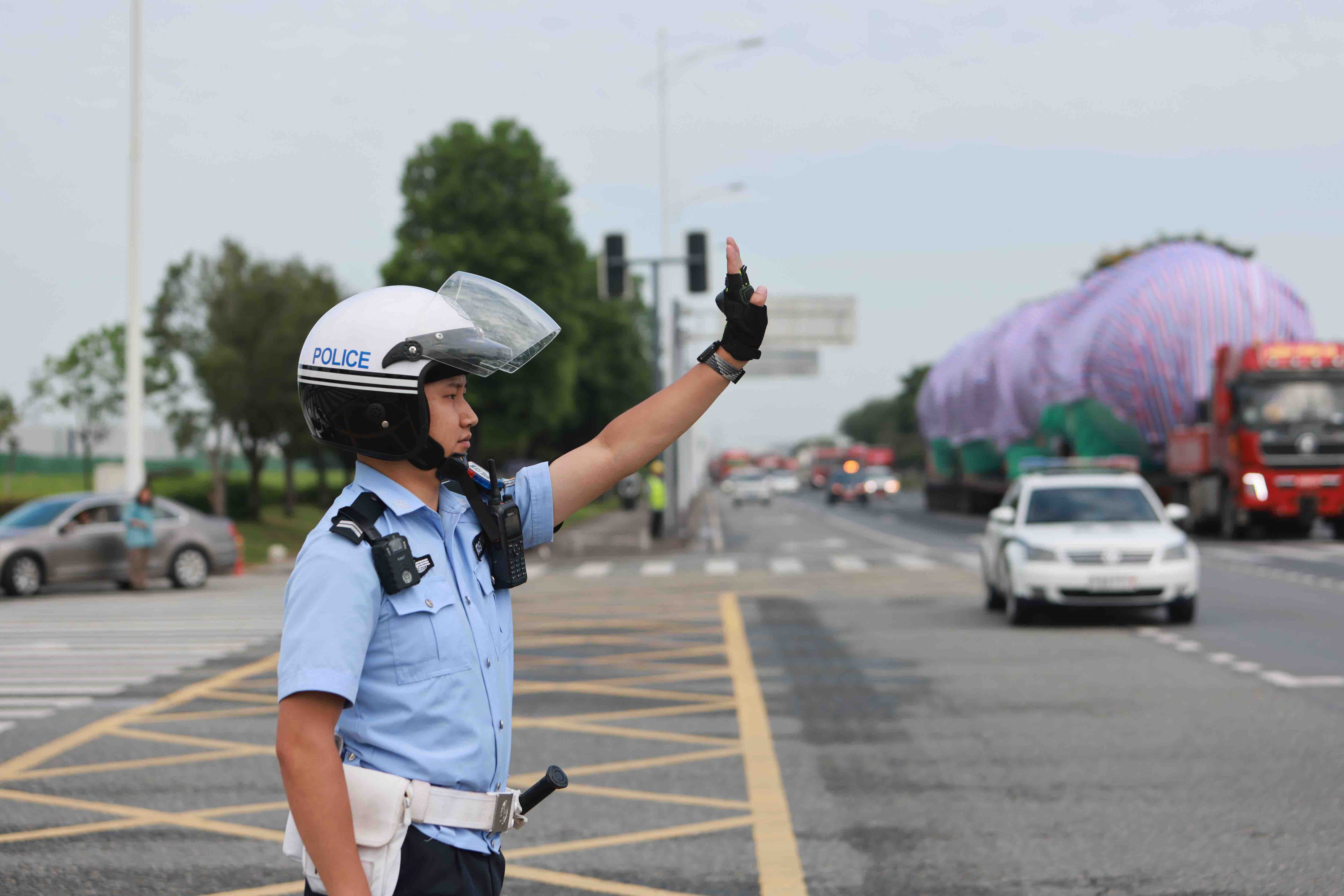 車隊(duì)經(jīng)德陽、廣漢駛至青白江同華大道,成都交警由此接棒。成都市公安局交通管理局秩序處靜態(tài)科副科長(zhǎng)梅曉飛帶隊(duì),負(fù)責(zé)此次大件運(yùn)輸車隊(duì)在成都境內(nèi)的保障。