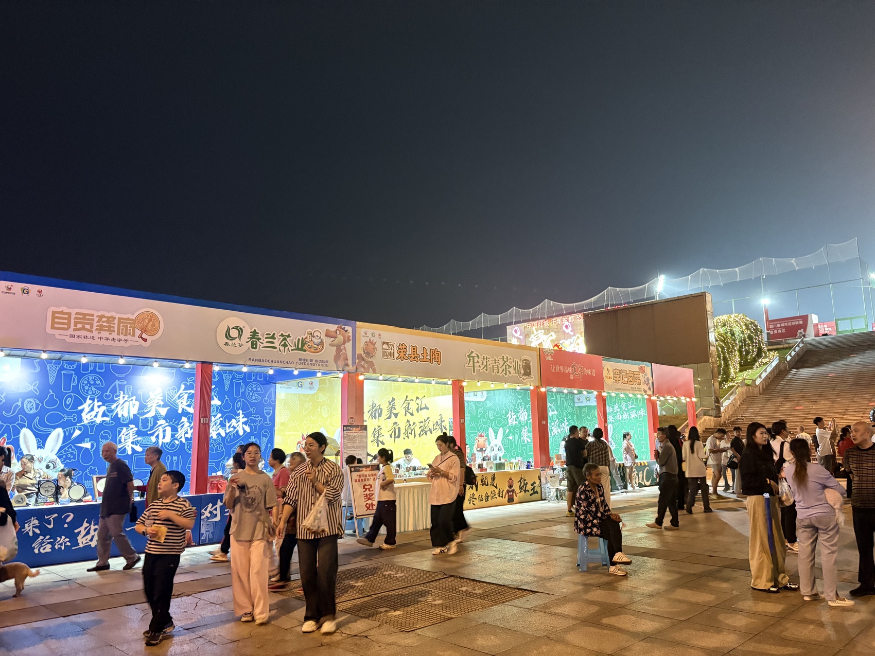內(nèi)江的展區(qū)也拿出了滿滿的誠意。工作人員向前來觀賽的自貢市民和外地球迷,詳細(xì)介紹內(nèi)江的雙節(jié)福利:憑今晚的川超票根,到資中狀元集市能免費品鑒山椒兔,去石板河景區(qū)露營可免部分裝備租賃費。而在內(nèi)江城區(qū),吾悅廣場“玩味甜城GO享雙節(jié)”活動早已開啟,本土特色產(chǎn)品、非遺手作展銷讓商場人氣爆棚,形成“賽場熱、商圈火”的聯(lián)動效應(yīng)。