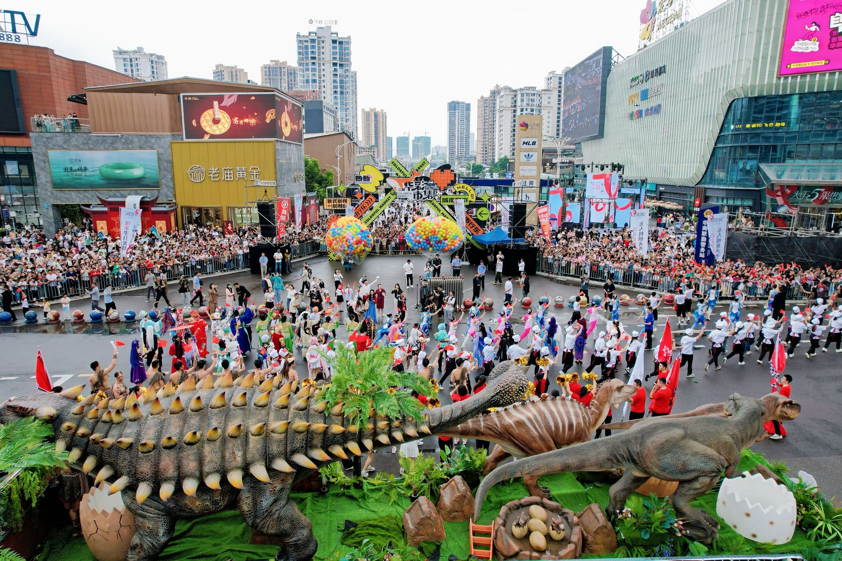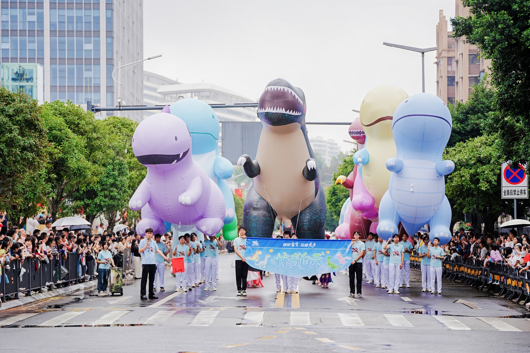 10月1日上午,自貢恐龍大巡游在華商舉行。(自貢市委宣傳部供圖)