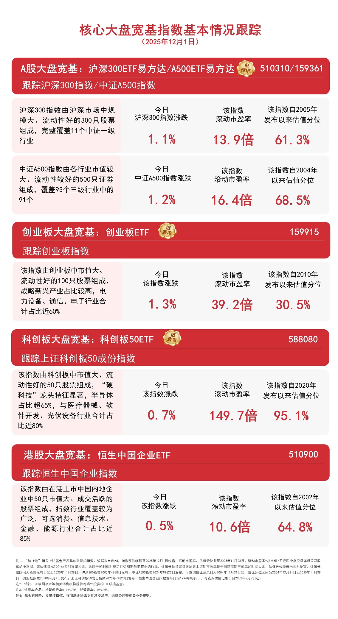 截至收盤,中證A500指數(shù)上漲1.2%,滬深300指數(shù)上漲1.1%,創(chuàng)業(yè)板指數(shù)上漲1.3%,上證科創(chuàng)板50成份指數(shù)上漲0.7%,恒生中國企業(yè)指數(shù)上漲0.5%。