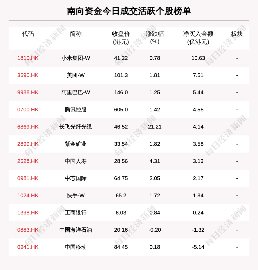 南向資金成交活躍個(gè)股榜單中,凈買入個(gè)股共10只,金額最多的是小米集團(tuán)-W(1810.HK,收盤(pán)價(jià):41.22港元),凈買入10.628億港元;凈賣出個(gè)股共2只,金額最多的是中國(guó)移動(dòng)(0941.HK,收盤(pán)價(jià):84.45港元),凈賣出5.143億港元。