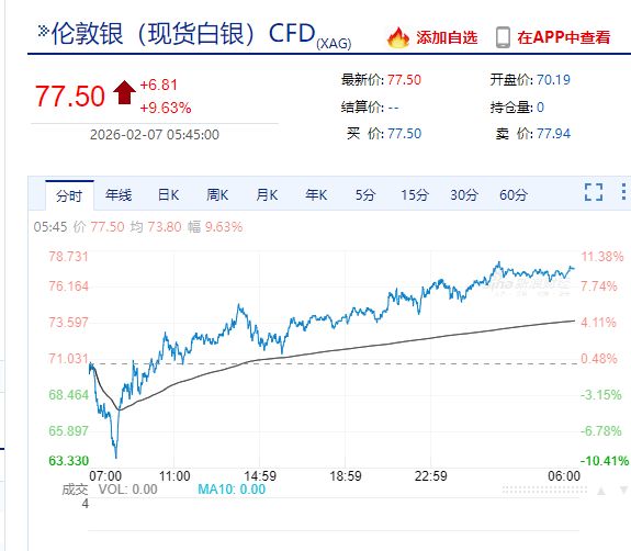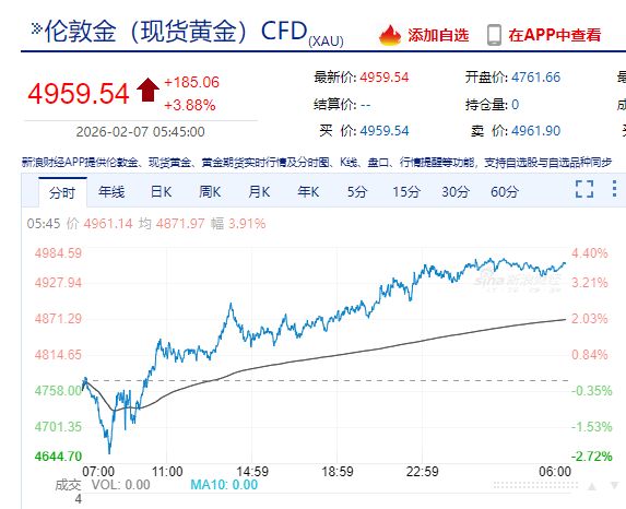 現(xiàn)貨黃金漲3.88%,報(bào)4959.54美元/盎司;現(xiàn)貨白銀漲9.63%,報(bào)77.50美元/盎司。
